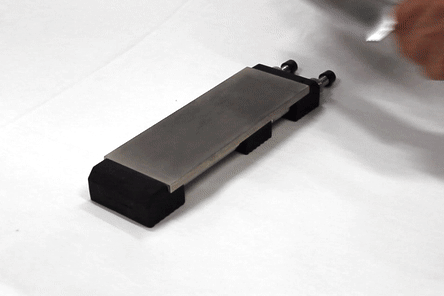 Forse la parte più difficile nell’affilatura manuale è quella di mantenere il giusto angolo per tutta la durata del passaggio della lama sulla pietra.