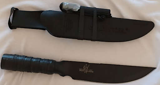 Manico: lungo 5 1/4 “, 13,0556 cm. Manico cavo. Acciaio / materiale: SK-5 ad alto tenore di carbonio, temprato a 54 HRC (Scala di Rockwell). Lunghezza totale: 12 1/4 “, circa 32 cm. Fodero: Secure-Ex con acciarino.