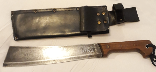 Nelle mie scelte ho sempre valutato un buon rapporto qualità, prezzo, peso, robustezza, ecc… ho deciso per alcuni attrezzi da taglio, con soddisfazione e in maniera più o meno definitiva. Utilizzo i coltelli bushman di Cold Steel, il coltello GI tanto dello stesso costruttore. Utilizzo anche un coltello machete di produzione italiana, la cui derivazione è chiaramente quella del Machete Coupe-Coupe (taglia taglia), con l’impugnatura avvolgente in legno ricavata da un unico pezzo, originario delle truppe coloniali senegalesi francesi. Il più famoso di questa tipologia è forse il Laurec “Coup-Coup”. La lunghezza totale con manico è di 40 cm., la lunghezza lama è di 26 cm. Utilizzo anche il manaresso nelle tipologie piemonte e santa giustina.