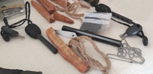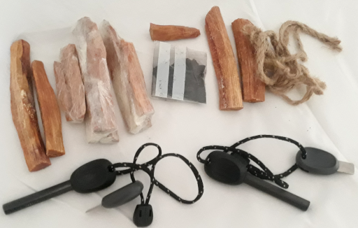 L’acciarino, chiamato anche ferro rod (bacchetta di ferro ) o ferro cerio è una lega artificiale di vari componenti. Questa lega è comunemente composta da ferro, cerio e lantanio e, può contenere anche neodimio, praseodimio, magnesio. Quando lo si sfrega contro un pezzo di acciaio al carbonio temprato, poroso o con uno spigolo vivo (che può grattare), produce una cascata di scintille che arrivano anche a 3.000 °C. L’acciarino è sicuramente il migliore strumento per accendere il fuoco, occupa pochissimo spazio e in un kit se ne possono mettere anche 2 o 3, non sono mai troppi ed è l’unica cosa che porto sempre volentieri in più.