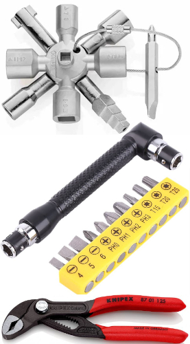 In contesti urbani, trovandosi in situazioni di emergenza, è utile avere a portata di mano, magari non proprio dentro l’EDC (ad integrazione di questo), ma comunque in posti facilmente accessibili (contenitore o astuccio nel bagagliaio dell’auto o in una confezione pronta a casa), la seguente attrezzatura, utile per avere accesso a dispositivi, prese d’acqua, installazioni idrauliche, elettriche ed elettroniche e allestimenti urbani, che potrebbero essere necessari in situazioni di emergenze e calamità.